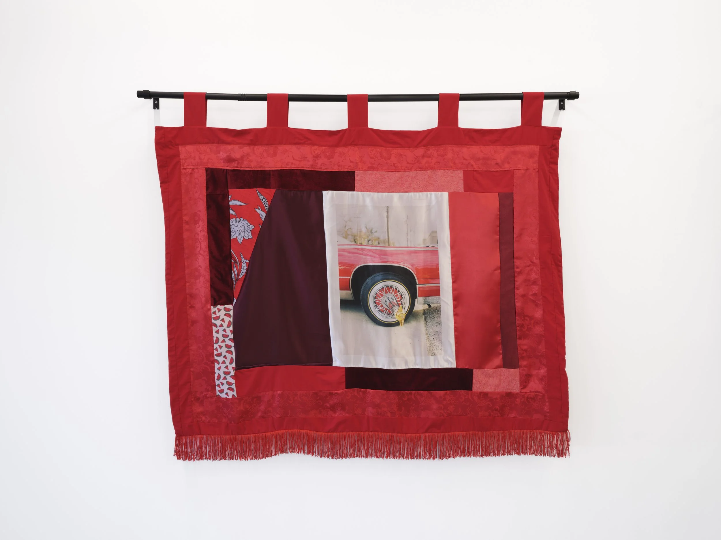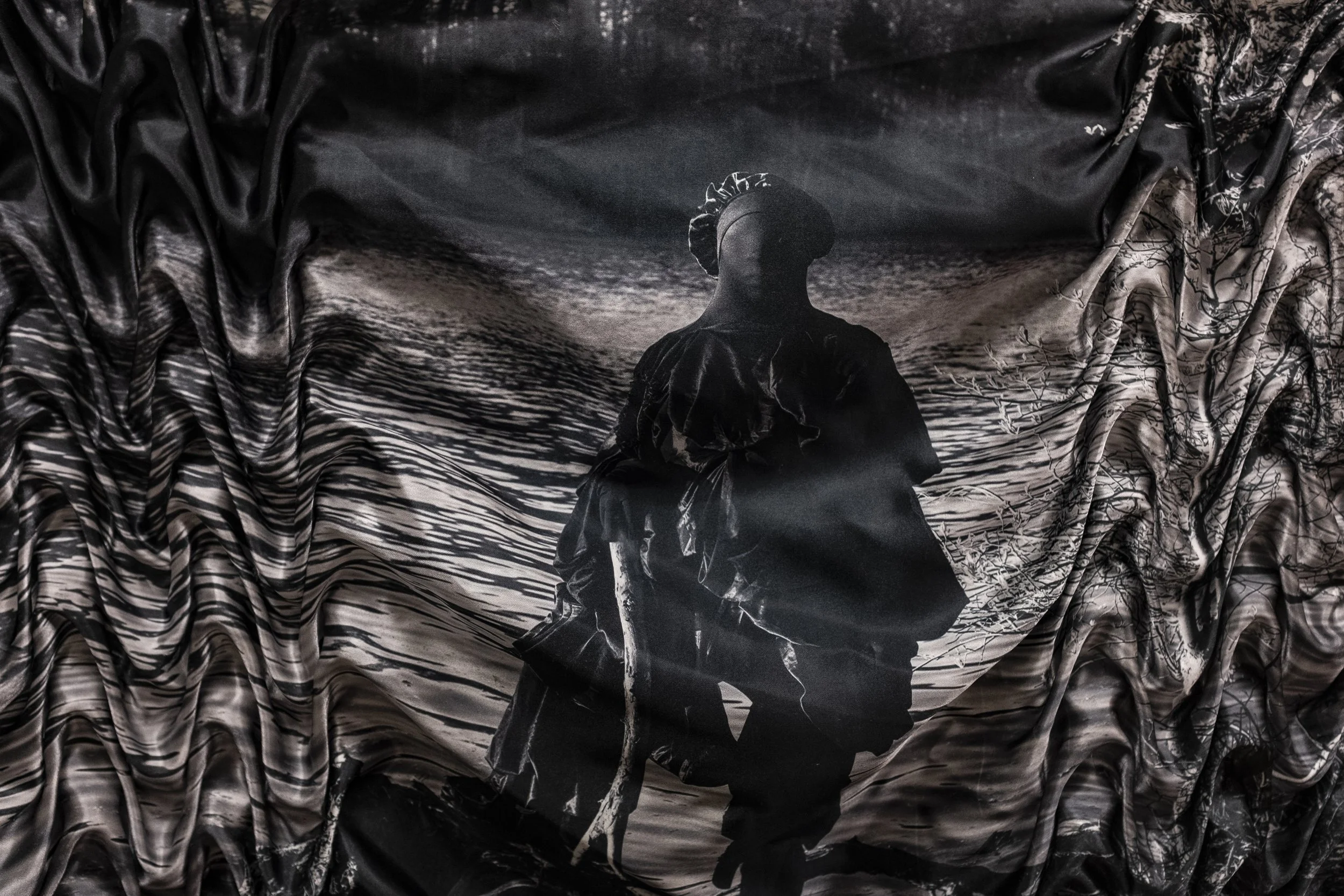 (Not Yet Titled), 2026. Photograph printed on satin, smocking.